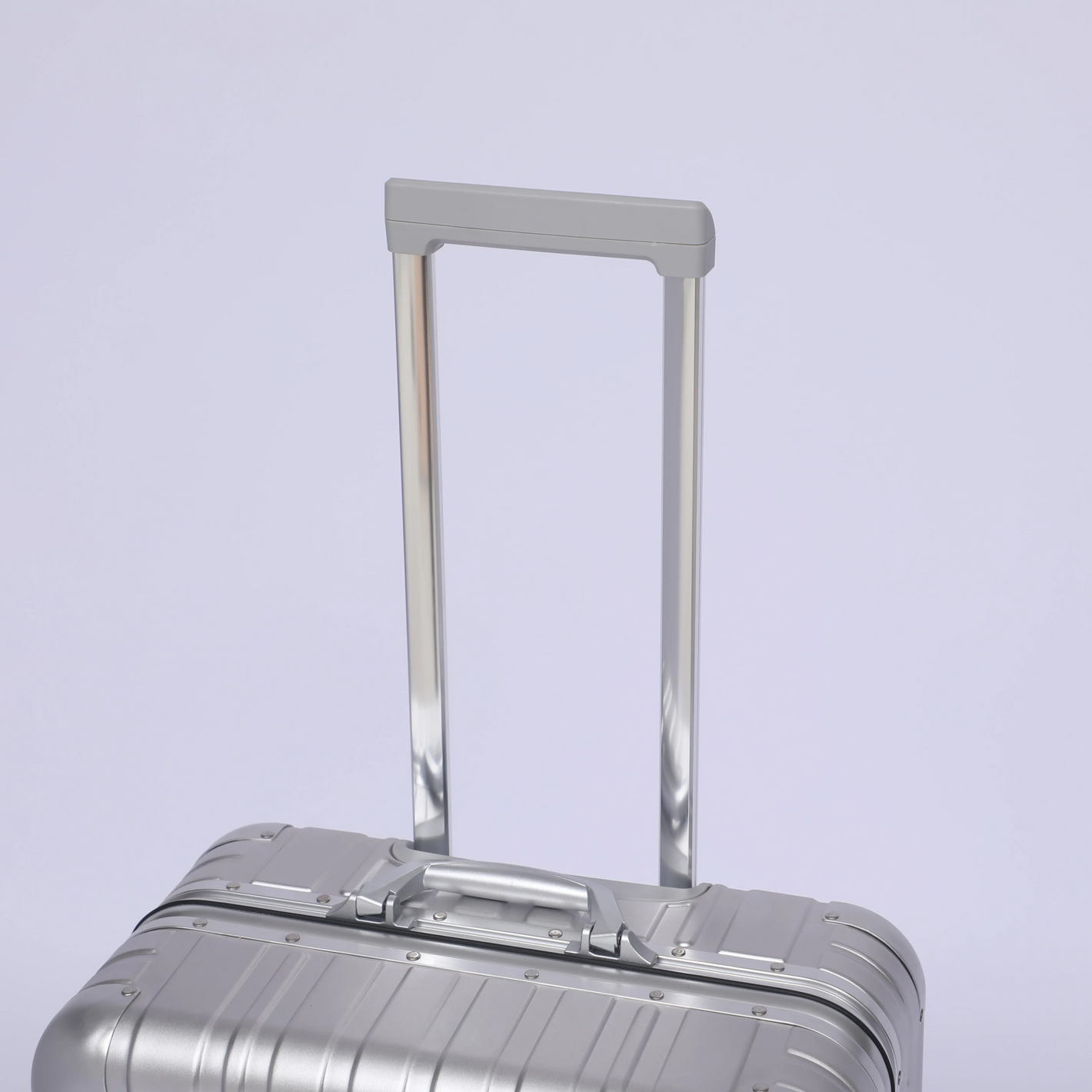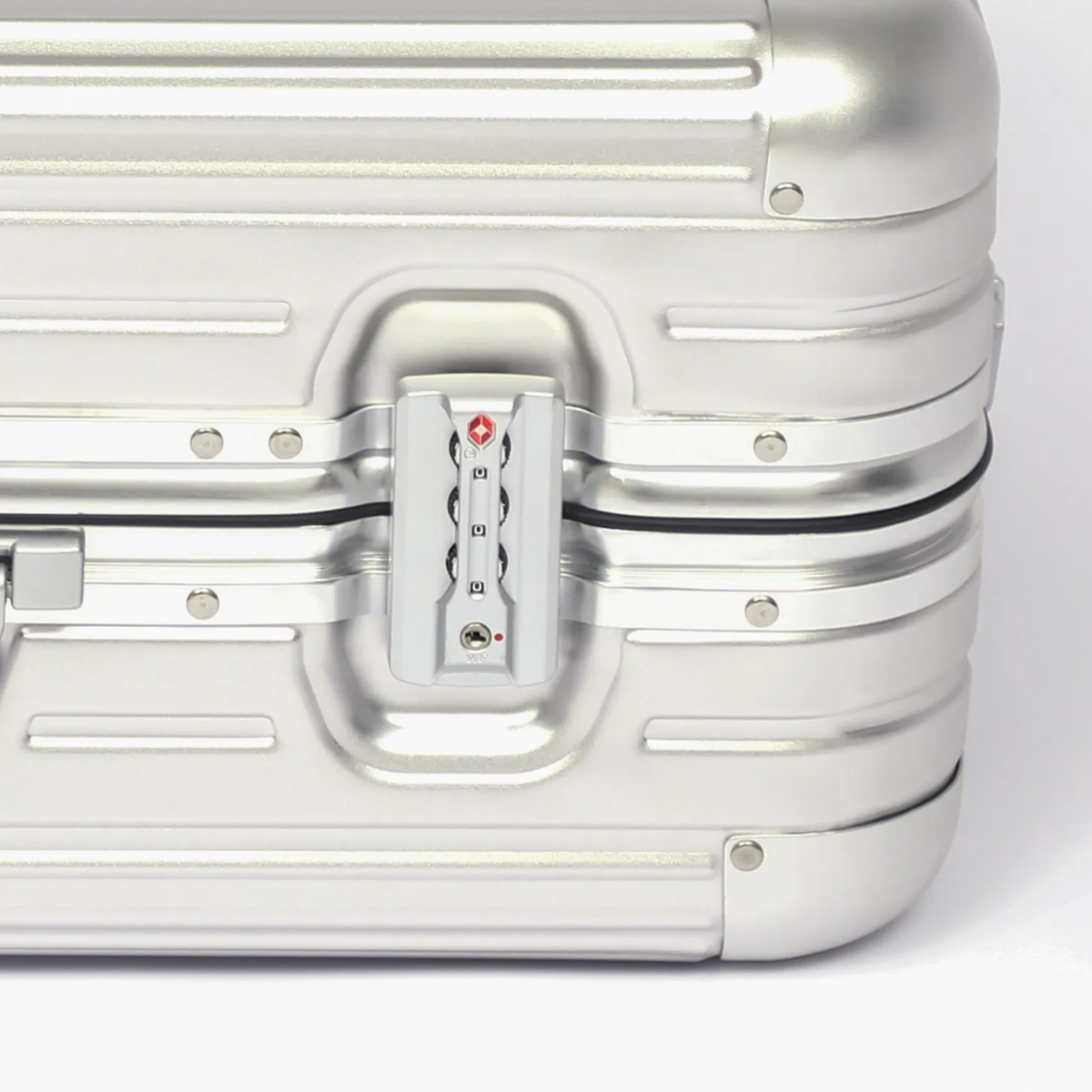 Our aluminium carry-on is built to last, with a durable aluminium hard shell that can withstand any journey. Perfect for short or business trips, it is sized to fit in the overhead bin of most major airlines, and still lightweight to pop easily onto a train or into a car. Thoughtful details like 360° spinner wheels ensure a smooth ride, and its interior compression system make it easy to pack all of your essentials.